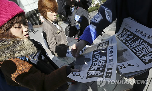 △ 8일 만에 또… (AP=연합뉴스) 1일(현지시간) 일본 도쿄 거리에서 시민들이 호외로 발행된 '고토(後藤)씨 살해 영상' 제목의 신문 1면 머리기사를 읽고 있다. 이슬람국가(IS)는 한국시간으로 이날 오전 5시께 고토 겐지(47)를 살해했음을 보여주는 영상을 인터넷에 올렸다. 지난달 24일 다른 일본인 인질 유카와 하루나를 참수했다고 밝힌 지 8일 만이다. bulls@yna.co.kr