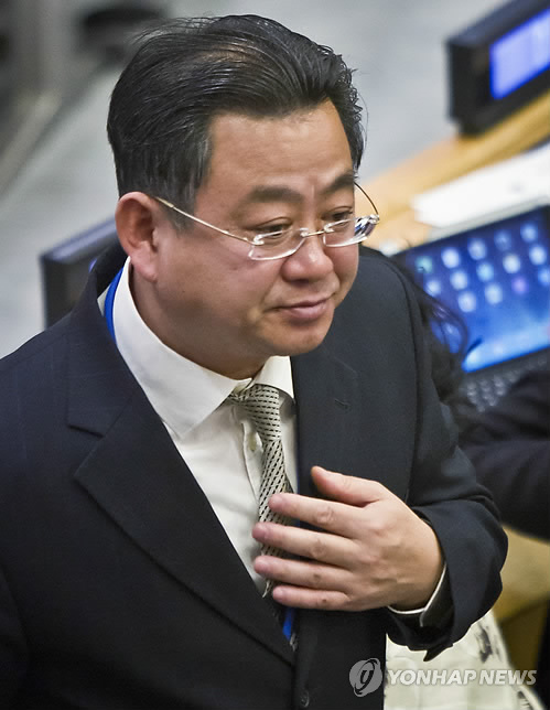 | △ (서울=연합뉴스) 유엔총회가 북한인권결의안을 채택한 작년 11월 18일(미국 현지시간) 총회 회의장의 최명남 북한 외무성 부국장. 최 부국장은 결의안 채택 직후 추가 핵실험 가능성을 거론했다. AP통신 사진. <<자료사진>> |