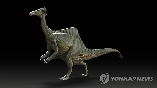 | △ (대전=연합뉴스) 한국지질자원연구원 이융남 지질박물관장 연구팀은 23일 공룡 '데이노케이루스 미리피쿠스'의 전체 모습을 발굴해 재현해 낸 복원도를 공개했다. 이로써 지난 50년간 공룡 학계의 미스터리로 남아있던 데이노케이루스의 전체 모습이 처음으로 밝혀졌다. 2014.10.23. <<지방기사 참고, 한국지질자원연구원 제공>> jyoung@yna.co.kr |