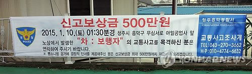 (청주=연합뉴스) 김형우 기자 = 경찰이 '크림빵 뺑소니' 사건과 관련한 신고보상금을 지급하지 않기로 했다.
