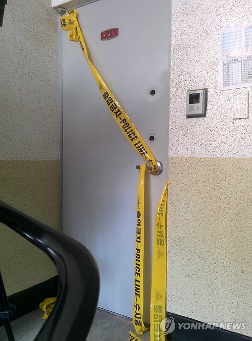 △ 굳게 닫힌 아파트 대문 (포항=연합뉴스) 김준범 기자 = 경북 포항의 한 아파트에서 60대·40대 모녀가 목을 매 숨진 채 발견됐다. 경찰은 주변 정황으로 미뤄 이들이 3~4개월 전에 숨진 것으로 보고 수사를 벌이고 있다.