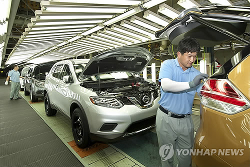 | △ 르노삼성차 닛산 로그 생산라인 (부산=연합뉴스) 르노삼성차가 10월 잠정집계로 2만2천대의 차량을 생산해 3년만에 월간 생산량 최대를 기록했다고 30일 밝혔다. 사진은 르노삼성차 부산공장에서 닛산의 신형 로그를 생산하는 모습. 2014.10.30 <<지방기사 참고>> joseph@yna.co.kr |