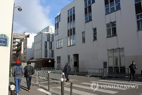 △ 테러당한 주간지 '샤를리 에브도' 앞 지나는 시민 (파리=연합뉴스) 박성진 특파원 = 프랑스 시민이 3일(현지시간) 파리에 있는 주간지 '샤를리 에브도' 건물 앞을 지나고 있다. 이 건물 앞 거리는 지난달 7일 이슬람 극단주의자의 주간지 테러 이후 출입이 통제됐다가 이날부터 다시 열렸다.