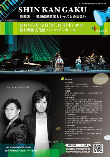 국악과 현대음악이 어우러진 새로운 한국 음악이라는 뜻의 '신한악' 공연은 차세대 재일동포 아티스트로 장구와 대금 연주의 민영치, 재즈피아니스트 하쿠에이 김(한국명 김영백)을 중심으로 한국에서 온 가야금 주보라, 판소리 이봉근과 일본의 스기모토 도모카즈(杉本智和, 베이스), 오오츠키"KALTA"히데노부(大槻英宣, 드럼)가 협연한다.