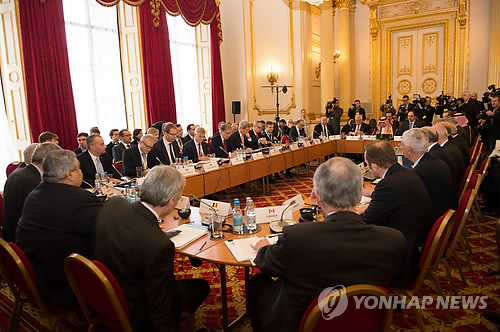 △ 지난 1월 22일 런던에서 열린 IS(수니파 원리주의 무장단체 '이슬람국가') 격퇴 동맹국 회담.(AP=연합뉴스)