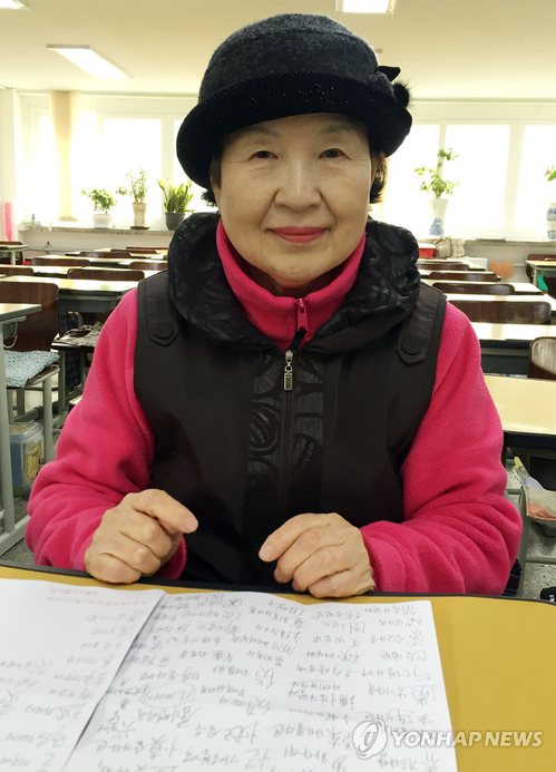 △ 여대생된 75세 장늠이 할머니 (서울=연합뉴스) 정빛나 기자 = 서울 마포구의 학력인정 평생학교인 일성여고 졸업생 장늠이(75)씨가 국가유공자 자녀를 대상으로 한 수시 전형으로 백석예술대 외국어학부에 합격해 다음 달이면 '새내기 여대생'이 된다. 2015.2.9 shine@yna.co.kr