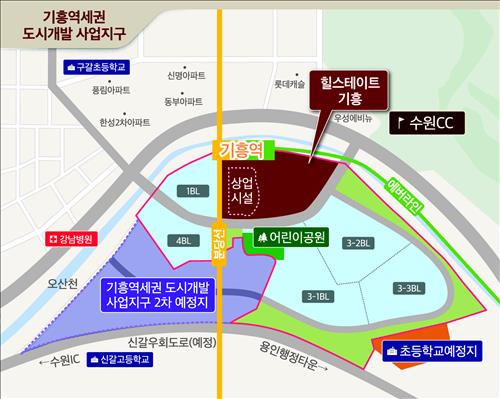 | △ 현대엔지니어링은 다음 달 경기도 용인시 기흥역세권 도시개발사업지구에 건설될 '힐스테이트 기흥'을 분양한다. 그림은 도시개발사업지구 내 '힐스테이트 기흥'의 위치도. |