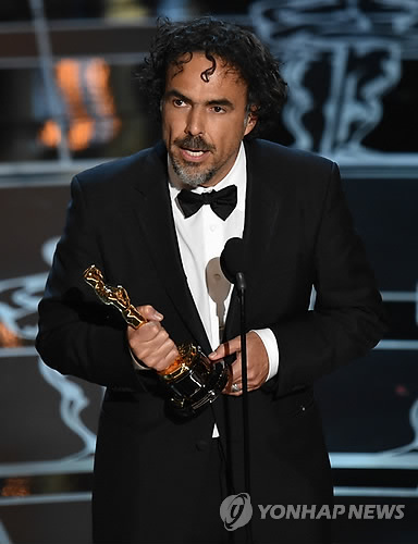 △ '버드맨' 이냐리투, 아카데미 감독상 수상 (AP=연합뉴스) 영화 '버드맨'의 알레한드로 곤잘레스 이냐리투 감독이 22일(현지시간) 미국 캘리포니아주 로스앤젤레스에서 열린 제87회 아카데미상 시상식에서 감독상을 수상한 뒤 소감을 발표하고 있다.