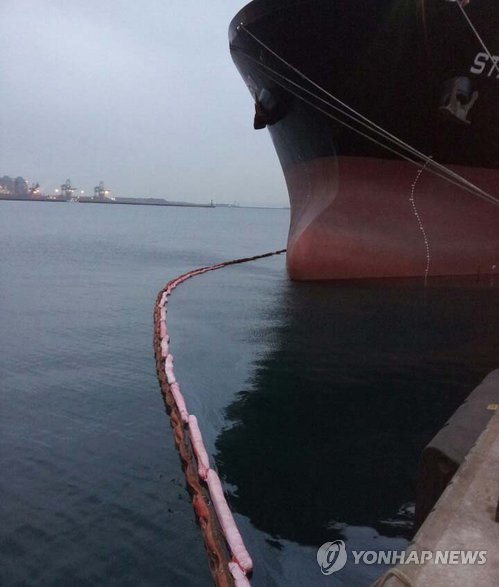 포항해양경비안전서에 따르면 23일 오후 4시10분께 포항신항 4부두 인근 해상에 정박 중이던 마셜제도 국적의 대형화물선 S호(3만169t)에서 벙커C유 1천400ℓ 가량이 유출됐다.