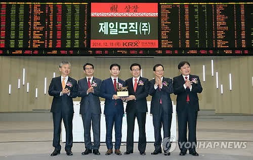 | △ 지난해 12월 서울 여의도 한국거래소에서 열린 제일모직 유가증권 상장기념식에서 관계자들이 기념사진을 촬영하고 있다. |
