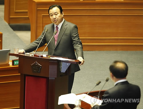 △ 답변하는 이완구 국무총리 (서울=연합뉴스) 이상학 기자 = 이완구 국무총리가 27일 국회에서 열린 교육·사회·문화 분야 대정부질문에서 의원들의 질문에 답변하고 있다.