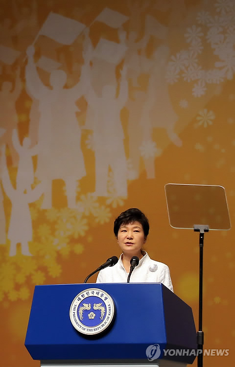 △ 박 대통령 "한일, 미래 50년 동반자로 새역사 써나가야" (서울=연합뉴스) 이정훈 기자 = 박근혜 대통령이 1일 오전 서울 세종문화회관에서 열린 제96주년 3·1절 기념식에서 기념사를 하고 있다. 2015.3.1 uwg806@yna.co.kr