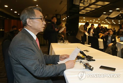 △ 입장 발표하는 김영만 민화협 홍보위원장 (서울=연합뉴스) 김주성 기자 = 마크 리퍼트 주한 미대사가 5일 오전 서울 세종문화회관에서 열린 민족화해협력범국민협의회 주최 초청 강연에 참석했다가 괴한의 습격을 받은 가운데, 김영만 민화협 홍보위원장이 입장을 발표하고 있다.