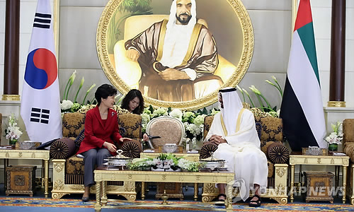 박 대통령은 이날 UAE 아부다비에서 모하메드 빈자이드 알나흐얀 아부다비 왕세제와의 정상회담에서 양국 간 전략적 동반자 관계를 더욱 심화시키기 위해 원전, 에너지, 건설·인프라 등 기존 협력을 확대하는 방안뿐 아니라 보건·의료, 식품·농업, 문화 등의 분야로 협력을 다변화하는 방안을 집중적으로 논의했다.