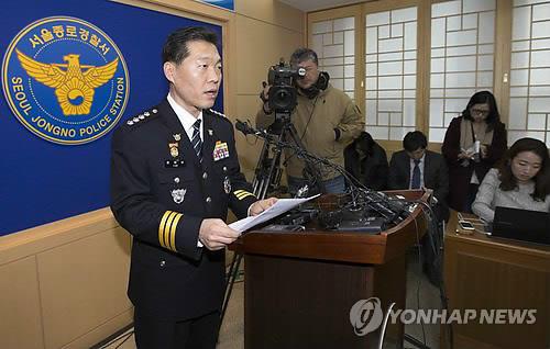 | △ 종로서, 김기종씨 관련 브리핑 (서울=연합뉴스) 윤동진 기자 = 윤명성 종로경찰서장이 9일 오전 서울 종로서 브리핑실에서 마크 리퍼트 주한 미대사의 피습사건 관련 수사 브리핑을 하고 있다. |