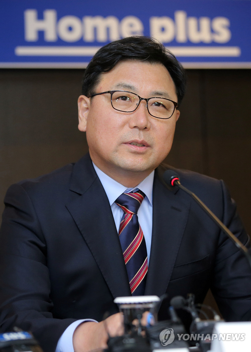 | △ 도성환 홈플러스 사장 기자간담회 (서울=연합뉴스) 이정훈 기자 = 도성환 홈플러스 사장이 10일 서울 중구 소공로 더 플라자호텔에서 기자 간담회를 열고 가격, 품질, 매장, 서비스 등에 대한 홈플러스 4대 혁신안을 발표하고 있다. 2015.3.10 uwg806@yna.co.kr |