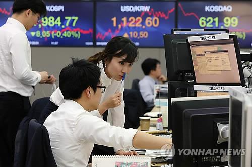 | △ 원·달러 환율이 급등해 지난 10일 서울 외환시장에서 원·달러 환율은 달러당 1,122.6원으로 거래를 마쳤다. 이날 오후 서울 중구 외환은행 본점 딜링룸에서 직원들이 업무를 보고 있다. |