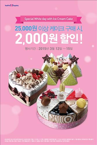 (서울=연합뉴스) 신호경 기자 = 배스킨라빈스(www.baskinrobbins.co.kr)가 화이트데이를 맞아 12일부터 15일까지 아이스크림 케이크를 할인 판매한다.