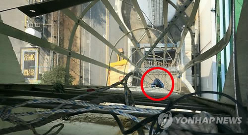 | △ 해고자 복직 등을 요구하며 이창근 정책기획실장과 60m 굴뚝을 올랐던 김정욱 사무국장이 고공농성 88일만인 지난 11일 오후 굴뚝을 내려왔다. (연합뉴스 자료사진) |