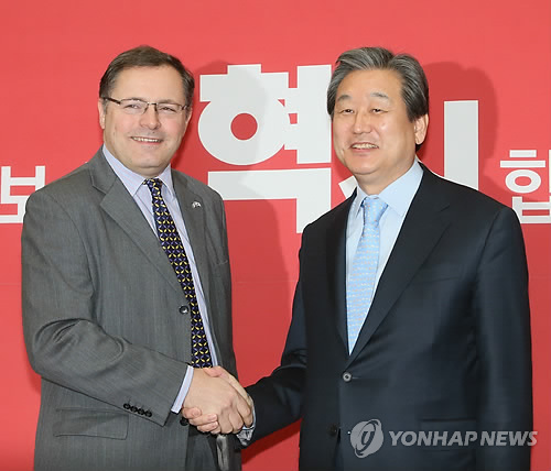 (서울=연합뉴스) 류미나 기자 = 새누리당 김무성 대표는 13일 오전 국회에서 찰스 존 헤이 신임 주한 영국대사와 클레어 펀리 신임 주한 뉴질랜드 대사를 잇따라 접견했다.