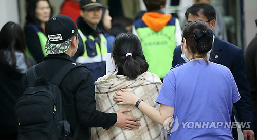 △ 지난해 4월 16일 전남 진도 해상 침몰 여객선 세월호에서 구조된 학생들이 경기도 안산 고대안산병원에 도착, 진찰실로 향하고 있다. (연합뉴스 자료사진)