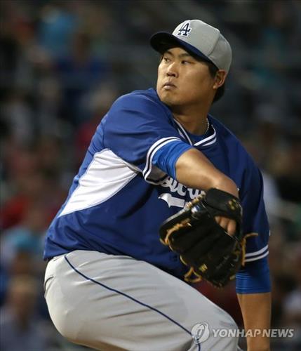 | △ 여전히 든든한 류현진 (피오리아<미국 애리조나>=연합뉴스) 황광모 기자 = 13일(한국시간) 미국 애리조나 피오리아 스포츠 콤플렉스에서 열린 미국 메이저리그 시범경기 LA 다저스와 샌디에이고 파드리스의 경기에서 LA 선발 류현진이 1회말 샌디에이고로 이적한 맷 켐프를 향해 역투하고 있다. 2015.3.13 hkmpooh@yna.co.kr |