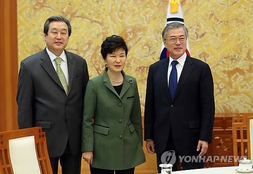(서울=연합뉴스) 신지홍 이승우 정윤섭 강건택 기자 = 박근혜 대통령은 17일 청와대에서 새누리당 김무성·새정치민주연합 문재인 대표와 회담을 하고 경제 재도약을 위한 초당적 협력을 요청했다.