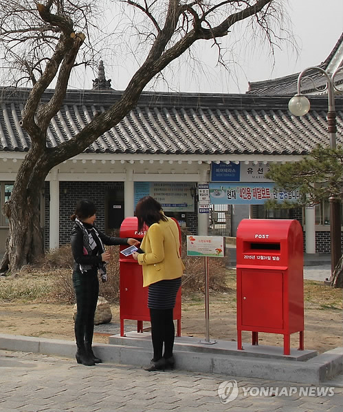 경상북도관광공사가 최근 설치한 느린 우체통은 시민과 관광객들이 엽서에 사연을 적어 넣으면 올 7월이나 내년 초에 주소지로 배달해 준다.