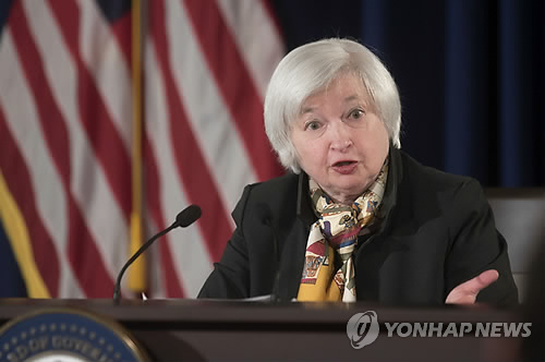 | △ 미국 연방준비제도는 18일(현지시간) 재닛 옐런 의장이 주재한 연방공개시장위원회 정례회의에서 제로(0) 수준의 초저금리 기조를 유지하되 "금리 인상 전 인내심 발휘"라는 표현을 삭제함으로써 기준금리 인상을 단행할 길을 열어 놓았다. (AP=연합뉴스) |