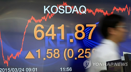 | △ 코스닥 6년 9개월만의 최고치 (서울=연합뉴스) 홍해인 기자 = 24일 코스피와 코스닥지수가 나란히 소폭 상승해 각각 6개월, 6년 9개월 만의 최고치를 기록했다. |