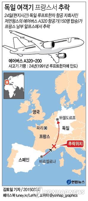 (베를린=연합뉴스) 고형규 특파원 = 24일 오전(현지시간) 프랑스 알프스에서 추락한 사고 항공기(A320)는 지난 1991년 2월 6일 독일 최대 국적 항공사인 루프트한자 쪽에 인도됐다고 외신들이 24일 전했다. 따라서 기령은 24년 이상 된 것으로 보인다.