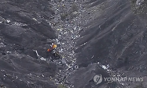 △ 독일 여객기 알프스서 추락 (AP/TF1방송=연합뉴스) 24일 오전(현지시간) 독일 저가항공사 저먼윙스 여객기가 추락한 프랑스 남부 세인 레 잘프스 부근 해발 1천500m 높이의 알프스 산악에 비행기 잔해가 흩어져 있는 모습. 스페인 바르셀로나공항에서 출발해 독일 뒤셀도르프로 향하던 이 비행기에는 승객 144명, 승무원 6명 등 모두 150명이 탑승하고 있었으며 전원 사망한 것으로 보도됐다. 저먼윙스는 루프트한자 계열 저가 항공사.
