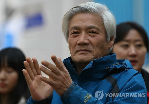 | △ 박수치는 김세균 공동대표 (서울=연합뉴스) 김도훈 기자 = 20일 오후 서울 중구 명동에서 국민모임 김세균 공동대표가 창당 발기인 대회를 홍보하는 대국민 거리 퍼포먼스를 관람한 뒤 박수를 치고 있다. |