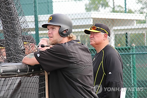| △ (브래든턴<미국 플로리다주>=연합뉴스) 장현구 특파원 = 미국프로야구 피츠버그의 강정호가 1일(현지시간) 미국 플로리다주 브래든턴에서 열린 스프링캠프 마지막 타격 훈련에서 홈런을 터뜨리자 클린흐 허들 감독과 코리 하트가 타구를 바라보고 있다. 2015.3.2 cany9900@yna.co.kr |