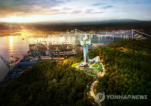 △ 울산대교 전망대 조감도 (울산=연합뉴스) 다음 달 준공을 앞둔 울산대교 전망대에 경관 조망용 망원경을 설치할지를 놓고 울산시가 고심하고 있다. 사진은 울산대교 전망대 조감도. 2015.4.1 << 울산시 >> yongtae@yna.co.kr