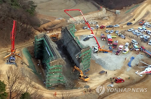| △ 9명의 사상자를 낸 경기도 용인시 처인구 남사면 교량상판 붕괴사고 현장 (연합뉴스 자료사진) |