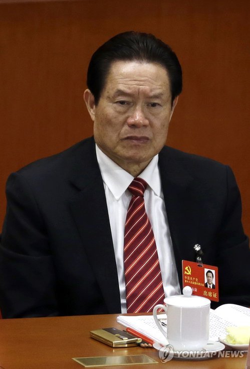△ 中 검찰, 저우융캉 전 상무위원 기소 (AP=연합뉴스) 중국 검찰이 부패 혐의로 송치된 저우융캉(周永康) 전 중국 공산당 중앙정치국 상무위원을 3일 정식 기소했다. 중국 톈진(天津)시 인민검찰원은 이날 톈진시 제1중급인민법원에 저우융캉에 대한 공소장을 제출했다. 검찰은 저우의 범죄 혐의로 뇌물수수, 직권남용, 국가기밀 고의 누설 등 3가지를 제시했다. 저우융캉은 후진타오(胡錦濤) 체제에서 최고지도부 일원인 정치국 상무위원과 공안·사법·정보 분야를 총괄하는 당 중앙정법위 서기를 지낸 인물. 사진은 그가 공산당 중앙정치국 상무위원이던 지난 2012년 11월 베이징 인민대회당의 공산당 제 18차 전국대표대회 개막식에 앉아 있는 모습. bulls@yna.co.kr