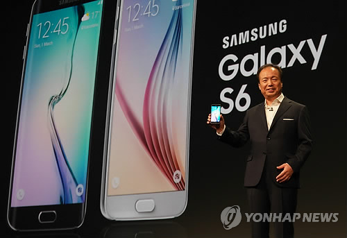 △ 지난달 1일(현지시간) 스페인 바르셀로나 컨벤션센터(CCIB)에서 열린 '삼성 갤럭시 언팩 2015'에서 신종균 삼성전자 IM부문 대표가 '갤럭시S6'와 '갤럭시 S6 엣지'를 공개하고 있다.