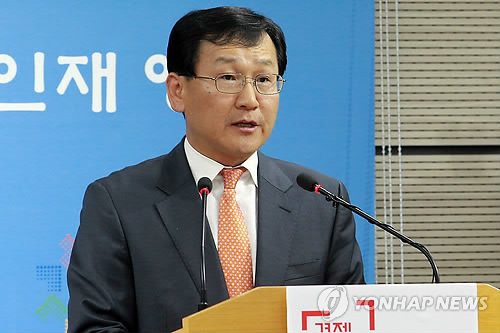 △ 일본 교과서 입장 발표하는 교육부 (서울=연합뉴스) 김재금 교육부 대변인이 6일 오후 세종시 정부세종청사 교육부 브리핑룸에서 일본 중학교 교과서 검정결과에 대한 교육부 입장발표를 하고 있다. (교육부 제공)