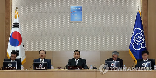 | △ 이완구 총리, 국무회의 주재 (세종=연합뉴스) 배재만 기자 = 이완구 국무총리가 7일 오전 정부세종청사 영상국무회의장에서 열린 세종-서울 청사 간 영상 국무회의에서 모두 발언을 하고 있다. |