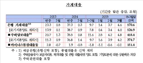 이에 따라 3월 말 전체 은행 가계대출 잔액은 한 달 전보다 4조6천억원 증가한 570조6천억원으로, 주택담보대출보다 작은 증가폭을 보였다.