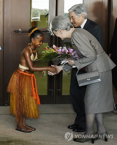 △ 팔라우 소녀에게 환영받는 일왕 내외(AP.연합뉴스.자료사진