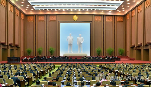 △ 북한 최고인민회의 개최 (평양 조선중앙통신=연합뉴스) 조선중앙통신은 북한 최고인민회의 제13기 제3차회의가 9일 평양 만수대의사당에서 열렸다고 보도했다.