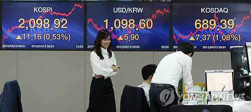 코스피는 13일 장중 최고 2,099.97까지 상승, 작년 장중 최고점인 2,093.08을 훌쩍 넘어섰다.