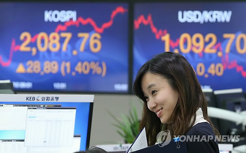 결국 지난 8일 심리적 저항선으로 여겨지던 2,050선을 넘어선 데 이어 14일에는 장중에 2,100선을 뚫은 뒤 2,110선에도 '터치'했다.