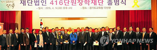 (수원=연합뉴스) 이영주 기자 = 세월호 사고 희생 학생과 교원의 생전 꿈을 계승하고 넋을 기리는 '4·16 단원장학재단'이 14일 출범식을 갖고 첫발을 내디뎠다.