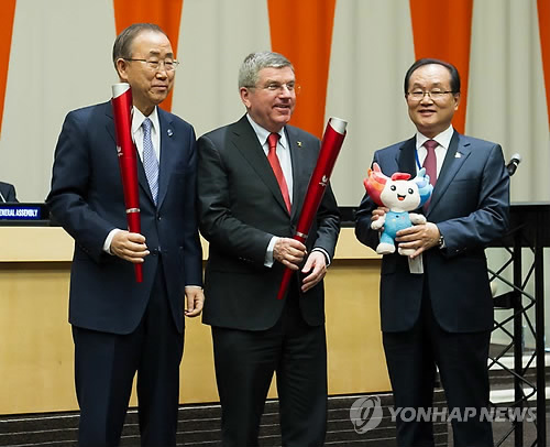 김 사무총장은 반 총장과 바흐 위원장, 크레이븐 위원장 등에게 성화봉을 전달하는 깜짝 이벤트도 펼쳤다.
