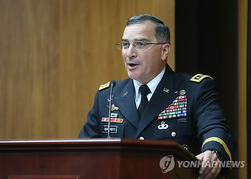 (워싱턴=연합뉴스) 노효동 특파원 = 커티스 스캐퍼로티 주한미군사령관은 15일(현지시간) 미국 고고도미사일 방어체계(사드)의 한반도 배치가 북한의 탄도미사일에 대한 방어능력을 강화시킬 것이라고 밝혔다.