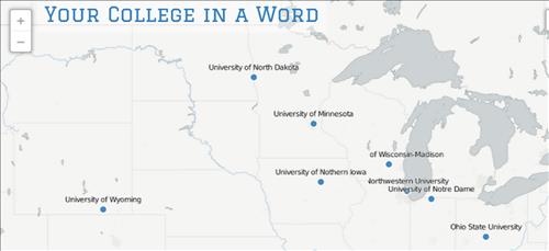 앞서 미국 내 주요 도시에 사는 주민들이 어떤 단어를 많이 찾아보는지를 살펴본 딕셔너리닷컴은 이번에는 미국 100개 대학 학생의 1천70만 건의 사전 검색 데이터를 활용해 학교별 빈출 검색 단어를 추렸다.