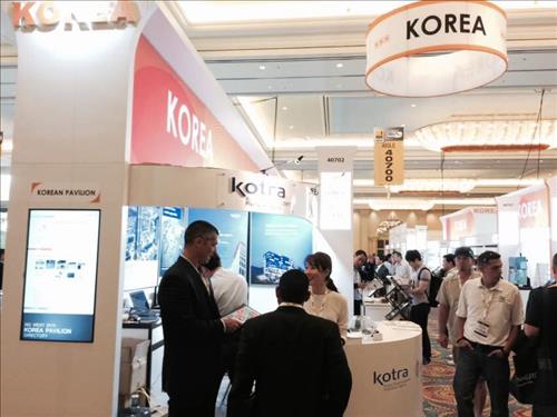 코트라 로스앤젤레스(LA) 무역관에 따르면 이번 전시회에 참여한 한국 기업들은 모두 50여 개 기업으로, 이 가운데 중소기업 28개사는 '한국관'에서 공동 전시·상담에 나섰다.